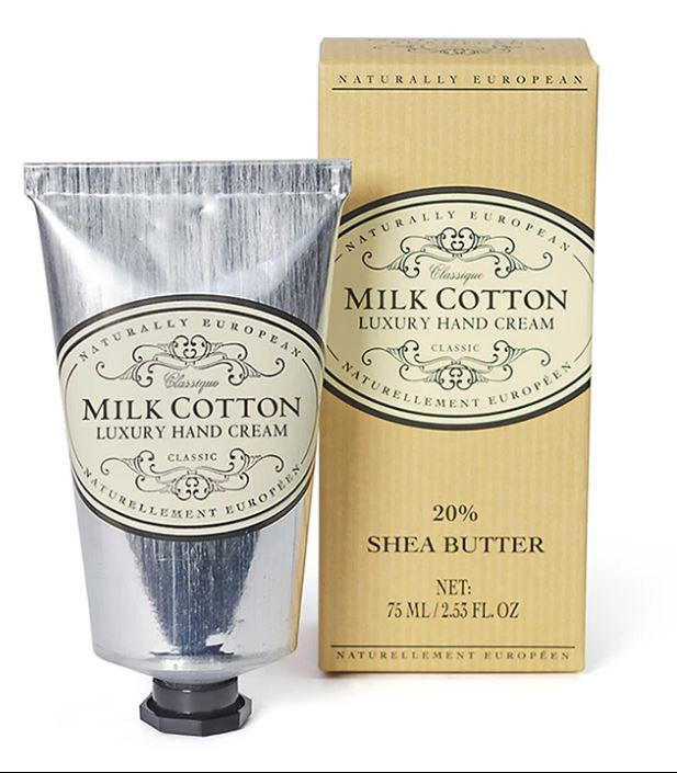 Introduce yourself to the calming effects of Naturally European Hand Cream, famed for its knack for soothing dry hands. Infused with 20% shea butter, this in-demand Hand Cream delivers outstanding skincare and a delightful fragrance of fresh milk cotton.