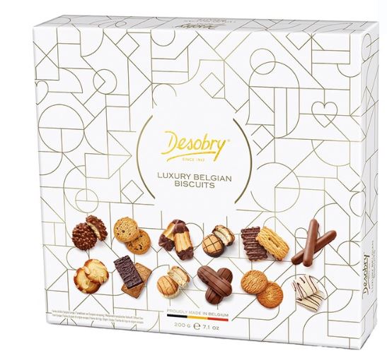 These are premium biscuits from Desobry, a renowned Belgian biscuit maker established in 1947. The “Luxury Belgian Biscuit” selection is an assortment of cookies: several varieties are included, including crispy biscuit bases with real Belgian chocolate (dark, milk, and white), creams, and other flavorings.