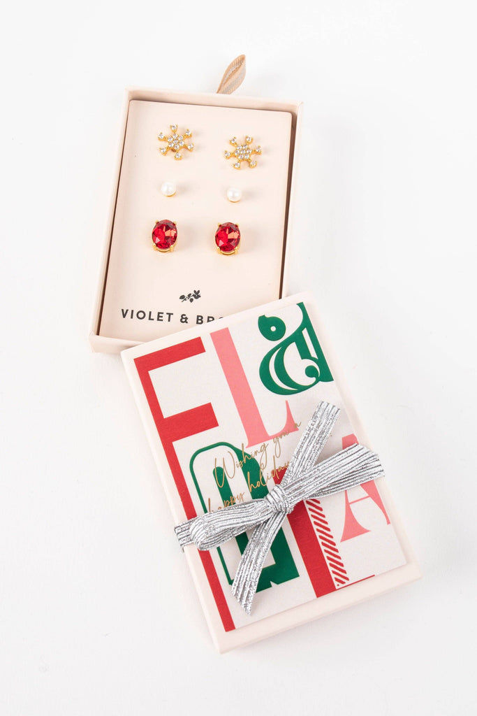 Boxed Holiday Earring Trio: Ruby