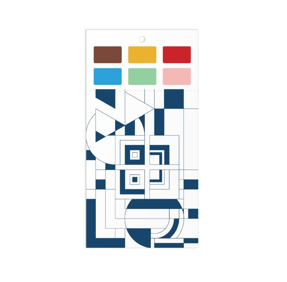 PAINT IN PRINT SET - The Frank Lloyd Wright Paint In Card Set includes a set of 6 cards featuring the iconic geometric designs of Frank Lloyd Wright that can be painted using the 6 colors embedded into the top of the card. Frank Lloyd Wright was an American architect, designer, writer, and educator. He designed more than 1,000 structures over a creative period of 70 years