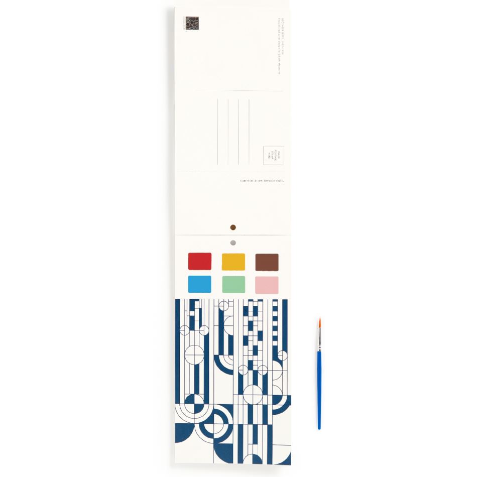 BRIGHT AND BOLD ARTWORK -The Paint In Print Set features six 5x7" cards, each preprinted with Wright's designs and a set of six embedded paint colors. The embedded paints are activated by simply wetting the enclosed paint brush. Tear off the perforated paint strip and you'll have a print to send or keep.