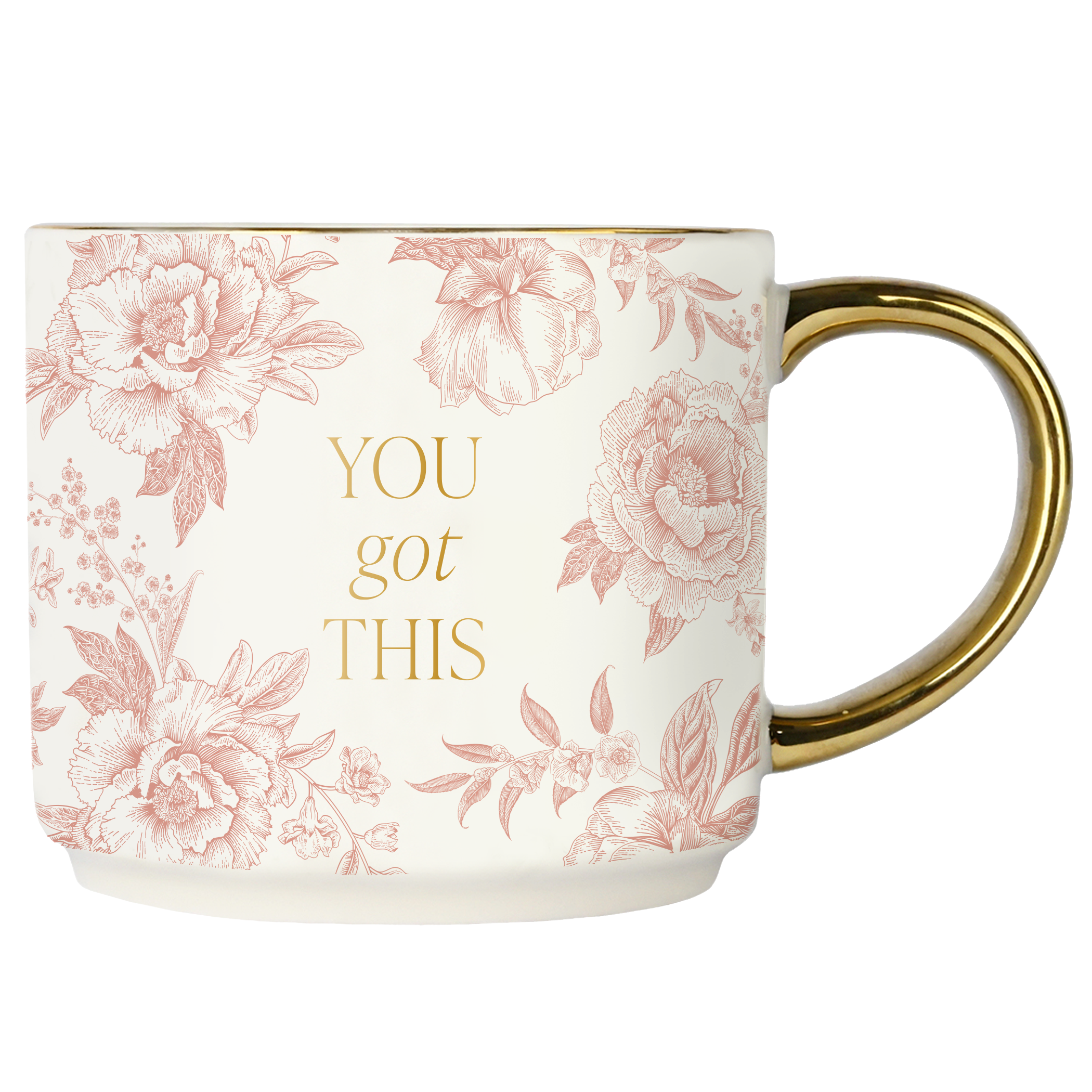 You Got This Mug, featuring a charming pink Delft design with a gold handle
