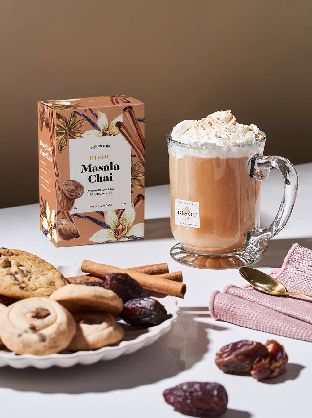 Spicy. Aromatic. Comforting. Enjoy the bold, aromatic flavors of Bisou Masala Chai, a traditional blend of robust black tea and warming spices like cinnamon, cardamom, and ginger. This rich and flavorful tea is perfect for those seeking a comforting, spicy brew that can be enjoyed with milk for a classic chai experience. Ideal for cozy moments or an energizing start to your day.